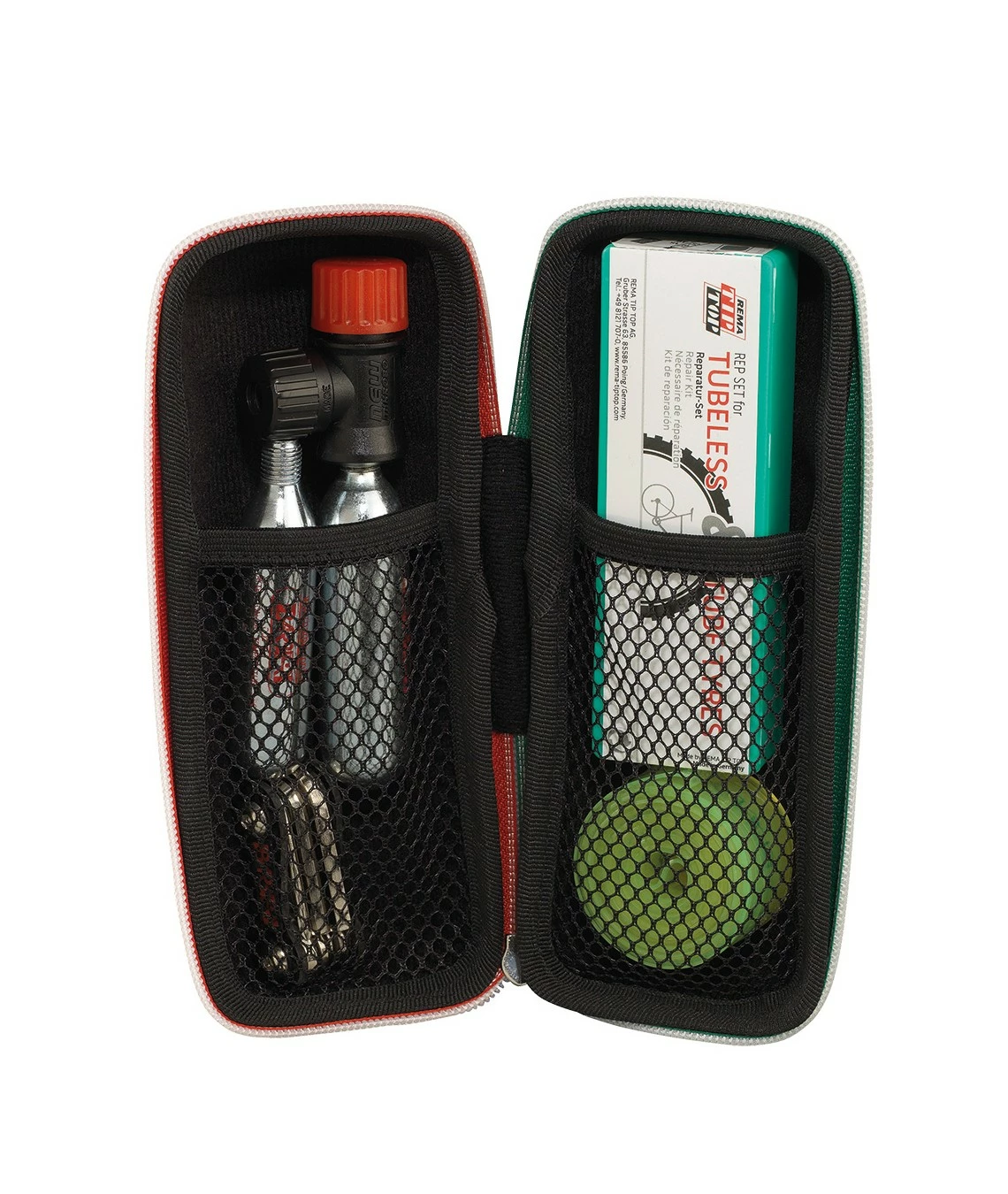 Barbieri Werkzeugbox für den Flaschenhalter im Carbon-Look. Innenseite aus Stoff mit 2 praktischen Netztaschen. deal zur Unterbringung von Zubehör, Minipumpen, Schläuchen, Werkzeugen etc.