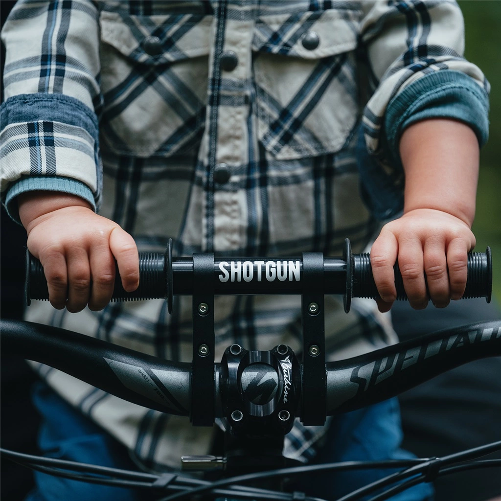 Der originale Shotgun Kinderlenker hat sich bei Tausenden von Mini-Mountainbikern bewährt. Ihr Kind wird es lieben, vorne mitzufahren, wenn es seinen eigenen Lenker und Griffe zum Festhalten hat. Die Shotgun Haltegriffe bieten eine weichere Alternative für kleine Hände und verhindern, dass Ihr Co-Pilot mit der Gangschaltung, den Bremsen und der verstellbaren Lenkradstange spielt!