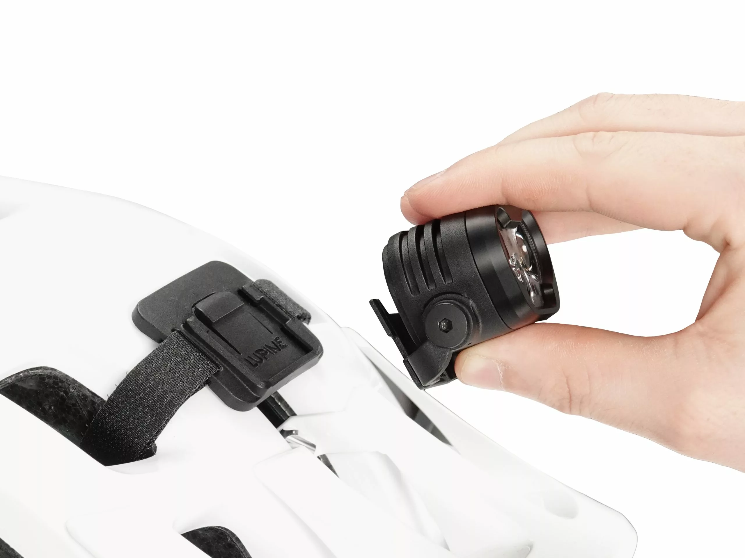 Mit dem FrontClick Schnellwechselsystem bist du so flexibel wie noch nie. Du verwandelst deine Stirnlampe in eine Helmlampe oder wechselst deinen Lampenkopf von einem auf den nächsten Helm, in wenigen Sekunden, ganz ohne Werkzeug. Die ultra-flache Aufnahmeplatte wird mit einem speziellen 3M-Klebepad oder dem bewährten Lupine-Klettsystem auf deinem Helm fixiert, die Lampe einfach eingeklickt.