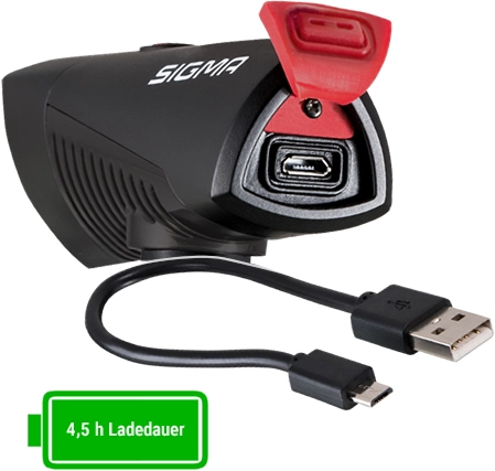 Der integrierte Lithium-Ionen-Akku hat eine Kapazität von 3300 mAh und verfügt über einen Überladungs- und Tiefenentladungsschutz. Er lässt sich über das im Lieferumfang enthaltenen USB-Kabel jederzeit wiederaufladen und verfügt über eine Brenndauer von maximal 18 h. In 4,5 Stunden ist der Akku per Micro-USB-Kabel wieder aufgeladen. Die Aufladung ist auch während des Betriebs möglich.