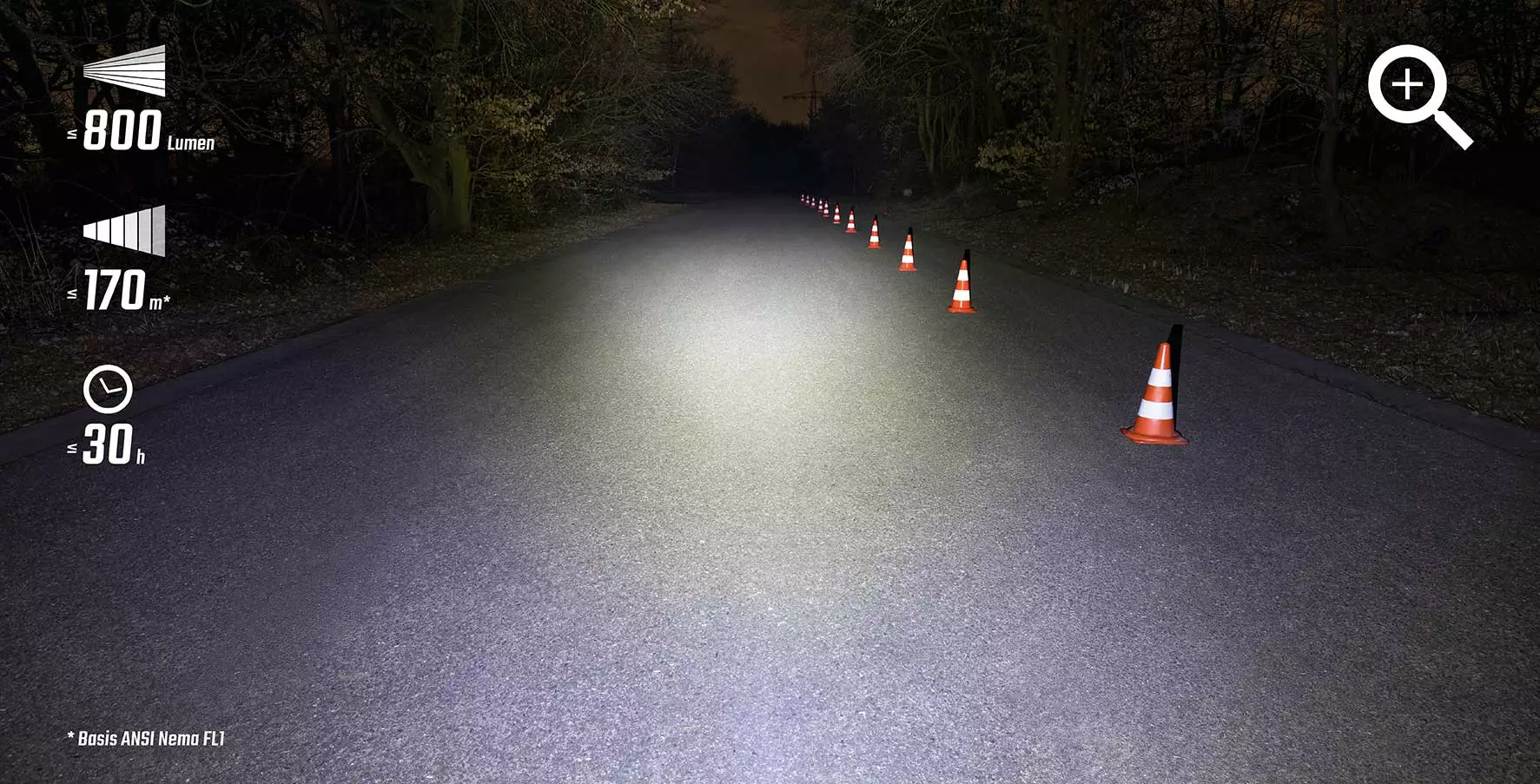 – Leuchtweite: 170 m