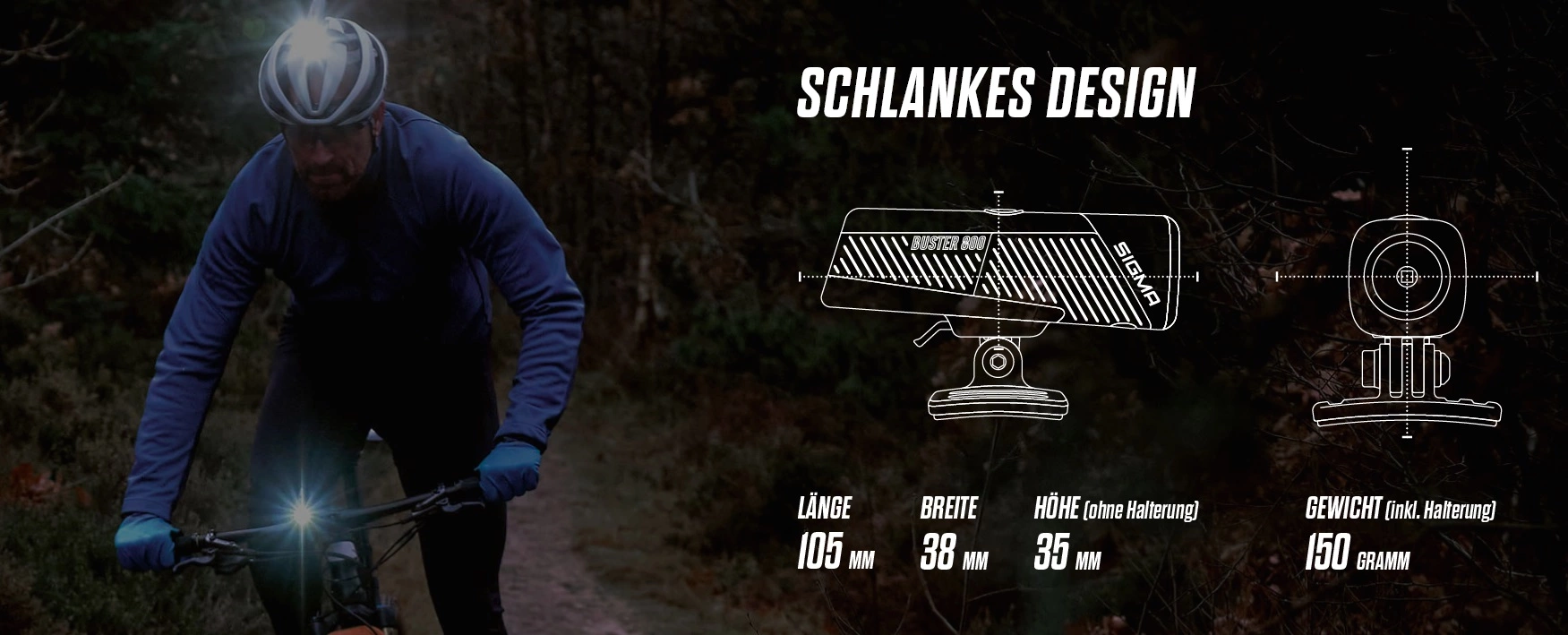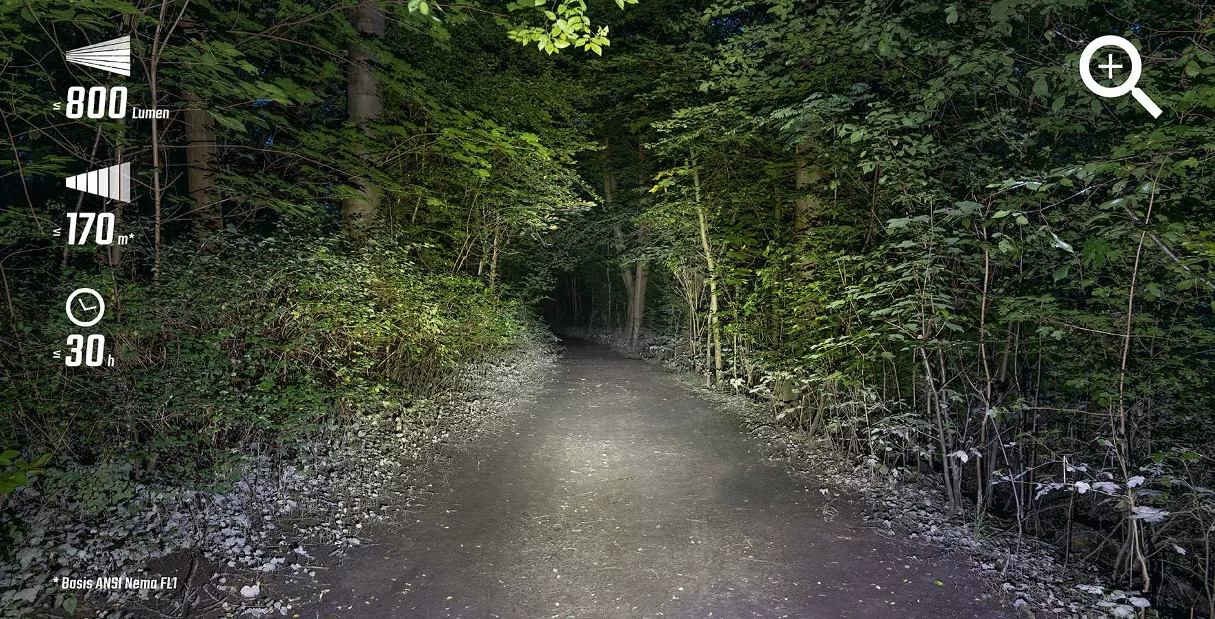 – Leuchtmodi: 5 Leuchtmodi: High (800 lm), Mid (400 lm), Low (150 lm), Night flashing (600/200 lm) Day flashing (200 lm)